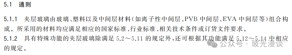 2009版并没有通则,在2025版增加了5.1通则,主要是将2009版的材料移至此章节。此外,增加了具有特殊功能的夹层玻璃除满足5.2~5.11的规定外,还可根据其功能满足5.12~5.14中相应的规定(抗风压、抵御暴力入侵性能和隔声性能)。